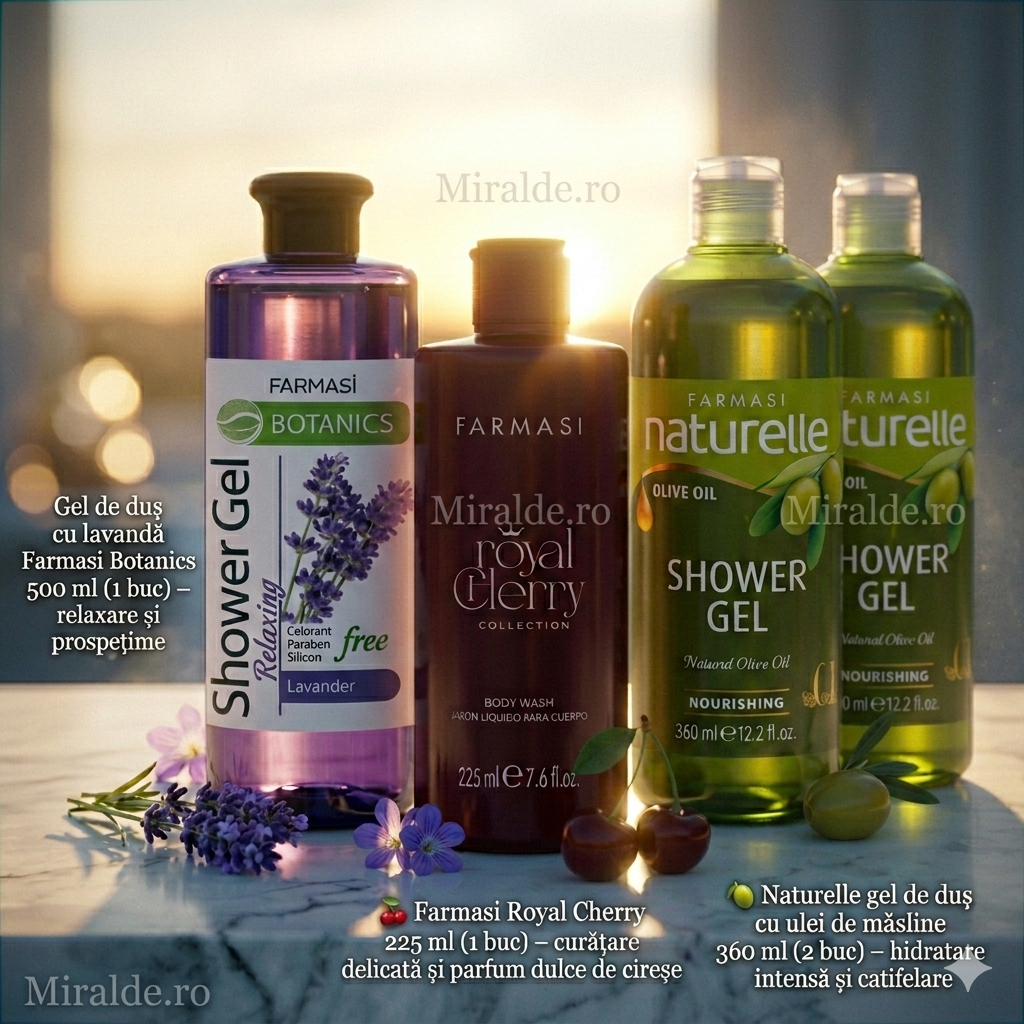💜 Acest pachet conține o selecție perfectă de geluri de duș Farmasi, ideale pentru întreaga familie: